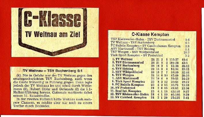 Als Meister in der C-Klasse Kempten stieg man in die B-Klasse Oberallgäu auf. Die zweite Mannschaft konnte ebenfalls die Meisterschaft feiern. Auf den folgenden Bildern sieht man die erfolgreichen Spieler, Trainer und Betreuer von damals.