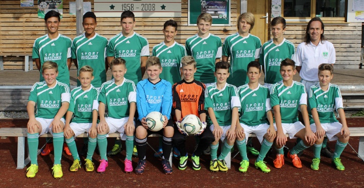 Hintere Reihe: Leon Denzel, Kevin Maccalum, Alexander Wassermann, Julian Mendler, Elias Baiz, Konstantin Kral, Kevin Schneider, Trainer Walter Haas