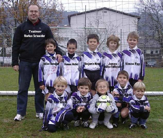Vordere Reihe von links: Philipp Laur, Matis Bölle, Leonas Pfeiffer, Elias Keck, Torwart Nico Steiger, Leon Schneider und Max Bölle
