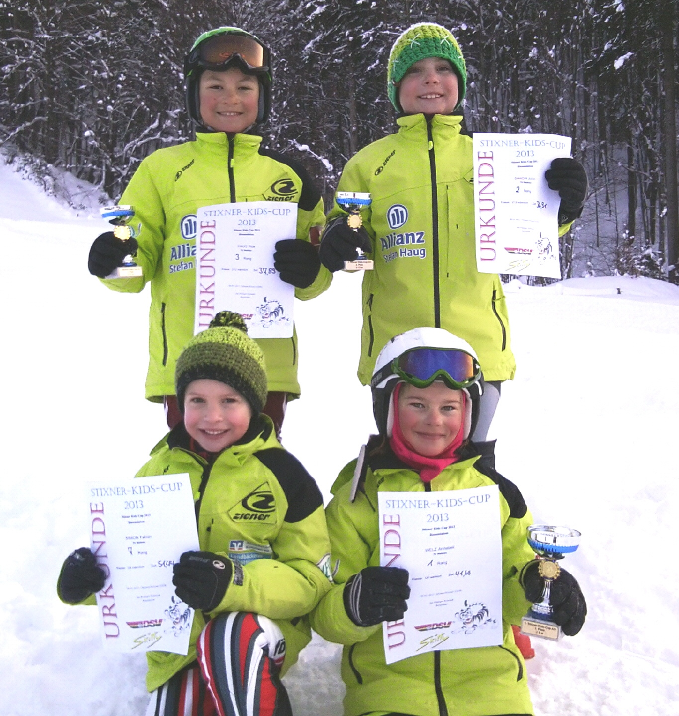 Am Donnerstag, den 14. Februar 2013, fand der 1. Stixner Kids Cup in Missen statt. Bei schönstem Winterwetter und gut gelaunt stellten sich acht Kinder des TV Weitnau der Herausforderung, einen Vielseitigkeits-Riesenslalom mit Sprungschanze zu bewältigen. Unsere jungen Rennläufer zeigten einmal mehr was in ihnen steckt und somit wurden wieder tolle Platzierungen erreicht. Annabell Welz fuhr gewohnt souverän auf den 1. Platz in ihrer Altersklasse. Julian Simion verpasste mit nur 0,19 sec. Rückstand knapp den Sieg, Pius Haug sicherte sich den 3. Platz und Ronia Shrestha erreichte wegen eines Torfehlers den undankbaren 4. Platz. Einziger Wermutstropfen war ein Sturz von Fabian Simion, der damit eine bessere Platzierung verpasste und sich am Ende mit einem 7. Platz zufrieden geben musste.