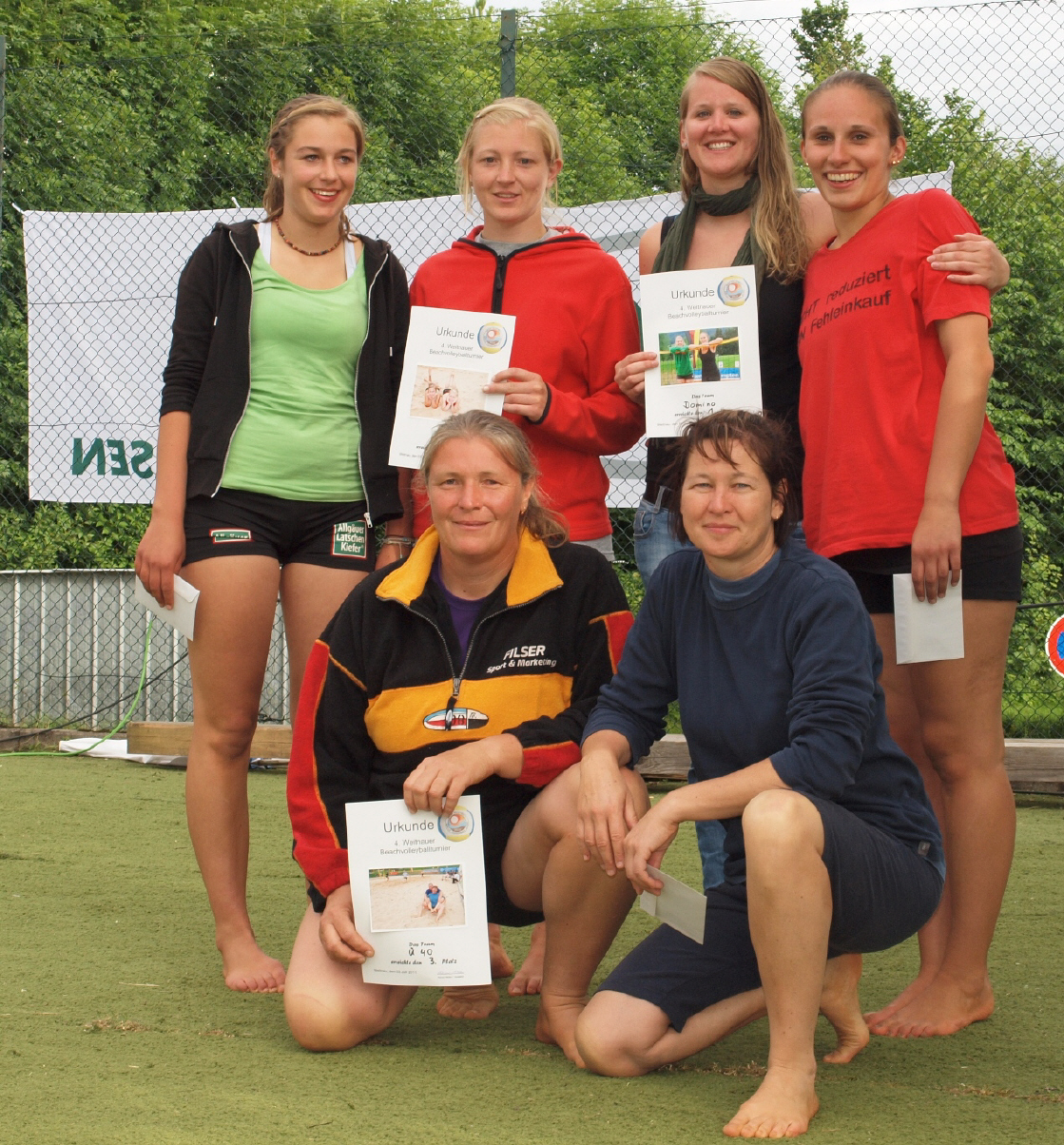 In der Herrenkonkurrenz zeigten sich die Weitnauer Teams nicht mehr so gastfreundlich wie in den letzten Jahren. Das Endspiel trugen die Weitnauer Besetzungen Jonas Strobel/Roman Vogel und Fabian Hueber/Vinzenz Wilmink gegeneinander aus. Erst im dritten Satz sicherten sich Strobel/Vogel denkbar knapp mit 11:9 die 50 Euro Siegprämie, während sich Hueber/Wilmink, wie im letzten Jahr, mit dem zweiten Platz zufrieden geben mussten. Im kleinen Finale lieferte die jüngste Weitnauer Mannschaft Jan Boysen/Benedikt Wilmink den „Fat Boys“ (Martin Mörz/Michael „Magic“ Nawrath aus Nesselwang) einen heißen Kampf der Generationen. Noch konnten sich die Nesselwanger durchsetzen, doch man darf auf die Revanche im nächsten Jahr oder vielleicht schon Ende Juli beim legendären „Schwaltenweiherturnier“ gespannt sein.