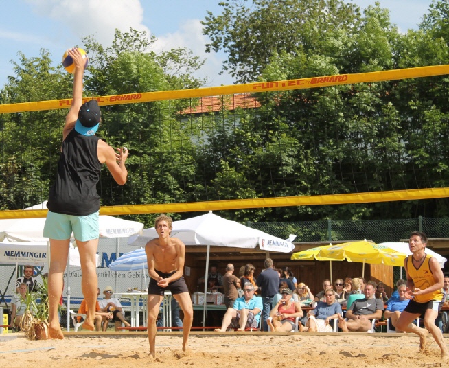 In der Herrenkonkurrenz des Aktiventurniers am Sonntag setzten sich die Sieger von 2011 Jonas Strobel/Roman Vogel aus Weitnau klar gegen das Nachwuchsteam Felix Engstle/Kilian Maidel vom TV Stein durch. Den dritten Platz sicherte sich das neu formierte Weitnauer Team Felix Hitzler/Fabian Hueber, nachdem es Huebers früheren Partner Vinzenz Wilmink nach Argentinien verschlagen hat. Sie setzten sich im kleinen Finale gegen Christoph Schadl/Martin Waibel aus Sonthofen durch, die damit nach 2012 erneut den vierten Platz belegten. Als Sieger der Herzen verließ das Team „ACDC“ den Platz als Zehntplatzierte. Volker Tellermann, der vor vielen Jahren in Weitnau das Volleyballer- und das Zimmererhandwerk erlernt hatte und sein Freund Pitti aus Hamburg, beide schon in den Fünfzigern überzeugten mit kämpferischen Einsatz und großartiger Stimmung auf am Sonntag endlich heißem Sand.