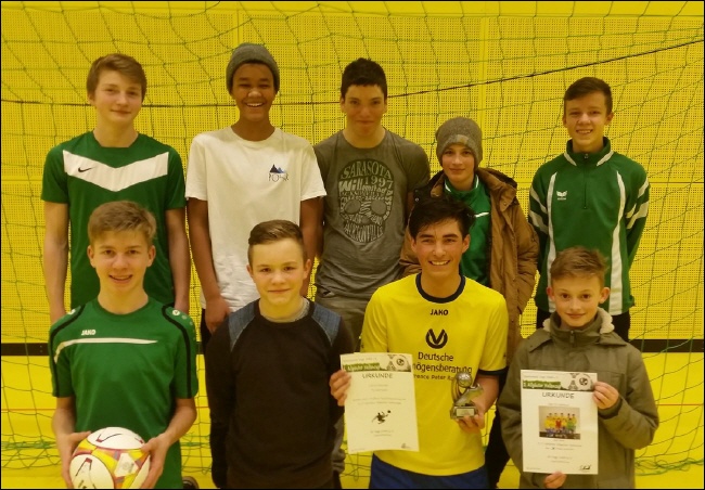 Hallenbericht U 15 Saison 2015/2016 Auf eine erfolgreiche Hallensaison kann die U 15 des TV Weitnau zurückblicken. Highlights waren hier die Vorrunde zur Allgäuer Meisterschaft, die normalerweise als Oberallgäuer Meisterschaft durchgehen könnte, man lies den FC Kempten, Vfb Durach und den FC Sonthofen als Erstplatzierter hinter sich und das ohne Gegentor bei 5 Siegen und einem Remis. Bei der Allgäuer Meisterschaft verpasste man knapp das Halbfinale, die erstan 3 Spiele spielte man Remis, darunter ein 0 : 0 gegen den Bezirksoberligisten FV Illertissen. Im abschliessenden Gruppenspiel gegen Germaringen musst man offen spielen da nur ein Sieg reichen würde und wurde 2x ausgekontert. Beim Allgäutor Cup im Baden Württembergischen Vogt liess man ebenso aufhorchen, unter 15 Teams belegte man den 4. Platz und lies nahmhafte Teams wie den Vfb Friedrichshafen, Sc Pfullendorf, Sv Weingarten oder den FV Olympia Laupheim hinter sich. Als einziges Team konnte man gegen den späteren Sieger FC Kempten ein Remis erzielen. Zum Abschluss gewann man das Turnier beim TV Haldenwang souverän mit 16 Punkten und 13:2 Toren aus 6 Spielen im Modus jeder gegen jeden. Weitere Ergebnisse. Waltenhofen: C2 Turnier 6 Platz, C1 Turnier 3. Platz. Durach: C2 Turnier 7 Platz, C1 Turnier 4 Platz. Blaichach 4. Platz. Coach Walter Haas zeigte sich sehr zufrieden, alle Spieler zogen voll mit, Technik und Taktik standen hier im Vordergrund, bereits beim ersten Testspiel auf dem Großfeld, ohne eine Trainingseinheit im Freien gegen den Kreisligisten Vfb Durach (3:1) zeigten sich die Fortschritte in der Gedankenschnelligkeit und im spielerischen Bereich. Zum Einsatz kamen: Tobias Geist, Jadranko Jurcevic, Elias Baiz, Kevin Schneider, Felix Stöhr, Fabio Krämer, Janik Schicht, Julian Mendler, Jonas Müller-Fassbender, Alexander Wassermann, Chrisopher Ludescher, Kevin Mccallum, Leon Denzel, Dominik Klenk, Hannes Weber und Kilian Stachel.