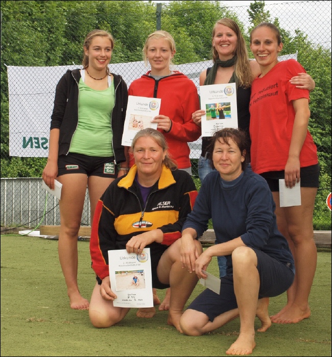Auch die acht Teams der Damenkonkurrenz lieferten Spiele auf hohem Niveau. In einem hart umkämpften Endspiel, das ebenfalls in den Entscheidungssatz ging, holten sich Svenja Guthsmuths/Simona Hitzler schließlich den Sieg gegen Sabrina und Susi Dölle. Platz drei ging an die Mutter der Zweitplatzierten Sieglinde Dölle zusammen mit Ihrer Partnerin Marion Rall, die im kleinen Finale Monika Gruber/Margit Rapp aus Nesselwang und Memmingen bezwangen. Das hochklassige Herrenendspiel war ein prächtiger Abschluss des von Beachchef Thomas Dölle wieder bestens organisierten Wochenendes, das viele Zuschauer aus nah und fern anzog. Schon nächstes Wochenende geht es weiter: Die Endrunde der Allgäuer Beachmeisterschaften wird in diesem Jahr auf der Weitnauer Anlage ausgetragen. Am Samstag spielen die besten Damen- und Herrenteams um den Allgäuer Titel, am Sonntag gehen die Mixed Mannschaften an den Start.