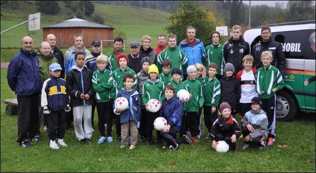 Seit Mai 2009 fahren 30 DFB-Mobile bundesweit zu den Fußballvereinen. Mit im Gepäck: ein Demonstrationstraining mit Tipps für Vereinstrainer und DFB-Informationen zu den Themen Qualifizierung, Mädchenfußball und Integration. Am 13. Oktober machte das DFB-Mobil erstmals in Weitnau Station. Jugendleiter Andreas Helmle hatte sich beim DFB-Mobil-Koordinator des Bayerischen Fußballverbandes für eine Teilname beworben und – nachdem der TV Weitnau auch schon erfolgreich an der DFB-Initiative Team-2011-Mädchenfußball teilgenommen hatte – schnell eine positive Rückmeldung erhalten. Mit DFB-Stützpunkttrainer Alexander Methfessel, der ursprünglich aus Kleinweiler stammt und in seiner Laufbahn unter anderem für den FC Memmingen und die Offenbacher Kickers aktiv war, konnte zudem auch ein bekanntes Gesicht in Weitnau begrüßt werden. Nach kurzer Begrüßung und Vorstellung leitete dieser dann gemeinsam mit einem DFB-Trainerkollegen aus Konstanz das Demonstrationstraining. Ziel dieses ersten Bausteines des Besuches ist die praktische Demonstration eines altersgerechten Jugendtrainings unter Einbeziehung der Jugendtrainer. Die Kinder der F- und E-Jugendteams des TV Weitnau waren mit viel Eifer bei der Sache, die eingeladenen Jugendtrainer konnten sich viele Anregungen und wertvolle Tipps für das eigene Jugendtraining holen.