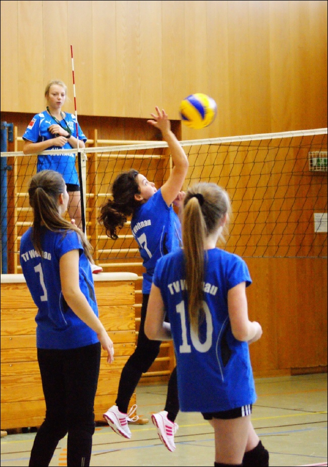 Einen Tag nach diesen Erfolgen traten die U-18 Mädchen ebenfalls zu Hause an. Im ersten Spiel trafen die Weitnauer Mädchen auf den TV Kaufbeuren. Nach etwas nervösem Beginn fand das Weitnauer Team rasch zu seinem Spiel. Eine gute Aufschlagquote und einige mutige Angriffsschläge sorgten für einen beruhigenden Vorsprung. Leider ließen einige einfache Fehler den Gegner noch einmal etwas herankommen. Trotzdem ging der Satz relativ klar an den TV Weitnau. Sichtlich gestärkt durch den Erfolg agierte die Mannschaft im zweiten Satz noch etwas souveräner und druckvoller. Mit einem 2:0 konnte der zweite Saisonsieg gefeiert werden.