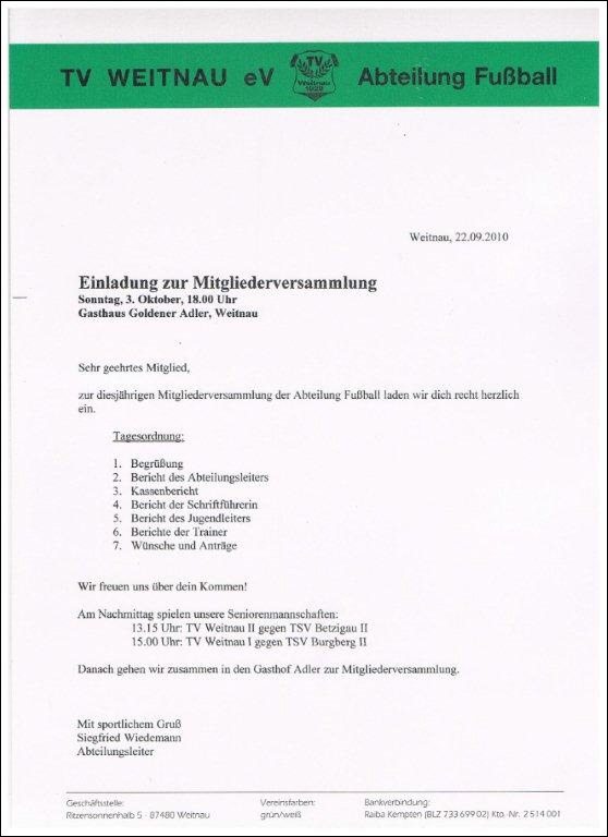 03.10.2010 - Mitgliederversammlung Abt. Fußball
