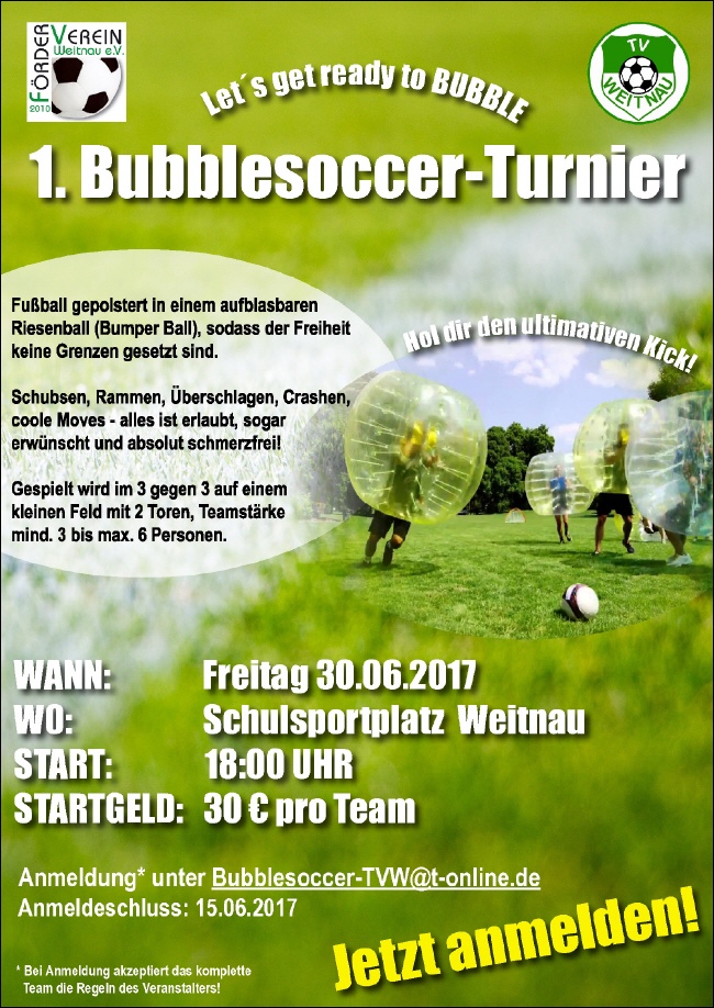 Anmeldung bitte unter Bubblesoccer-TVW@t-online.de