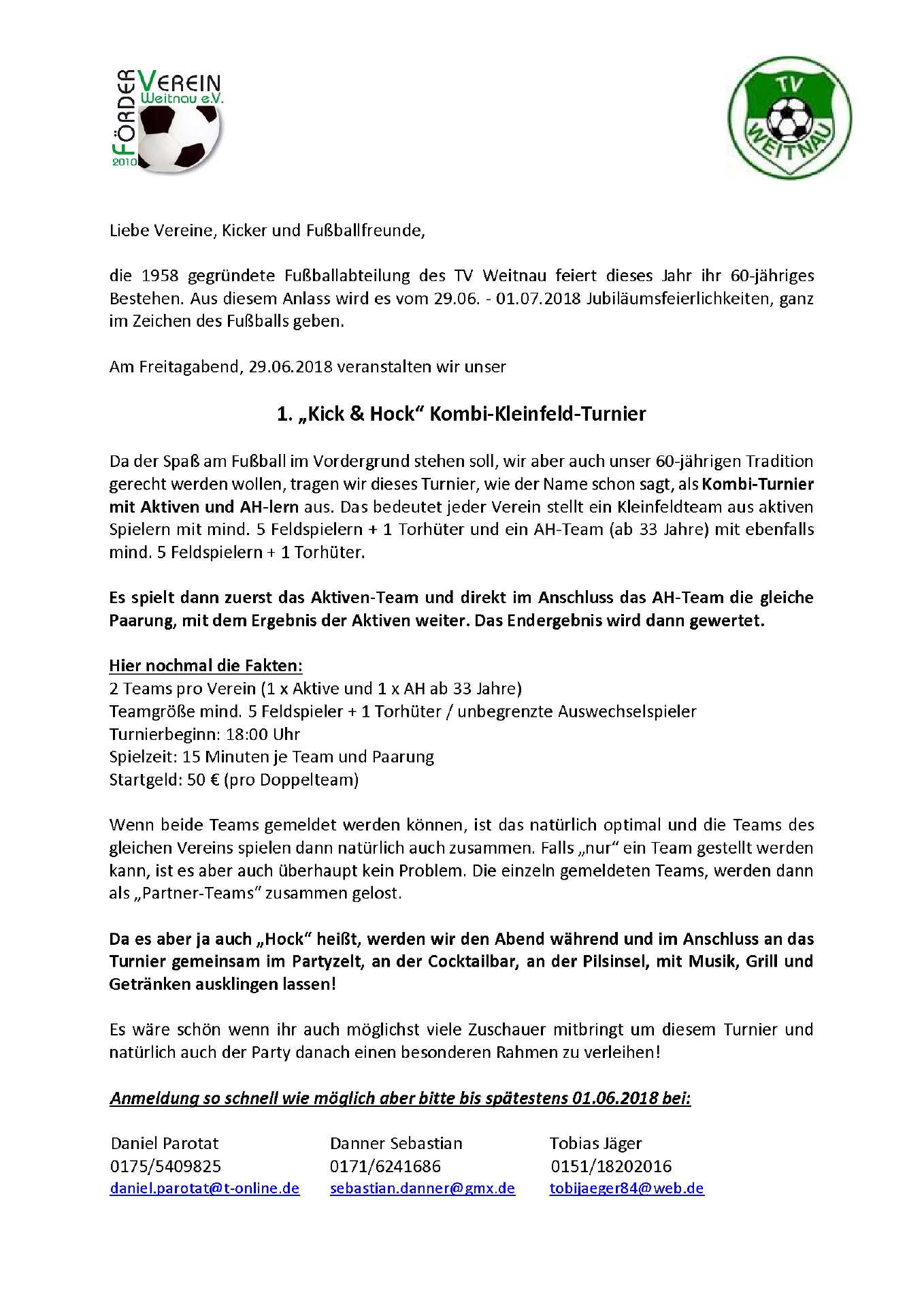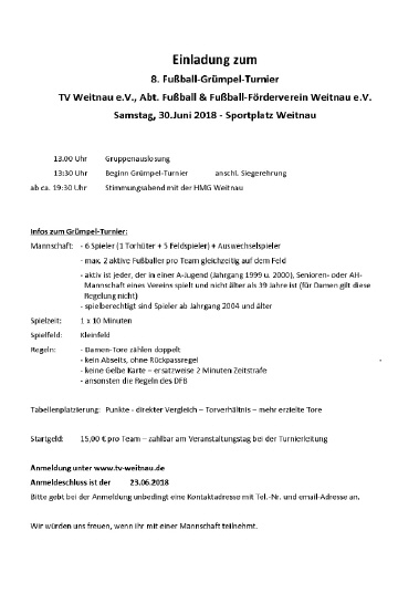 Nachmeldungen bis Samstag 23.06.2018 8.30 Uhr: 15 Euro pro Team.